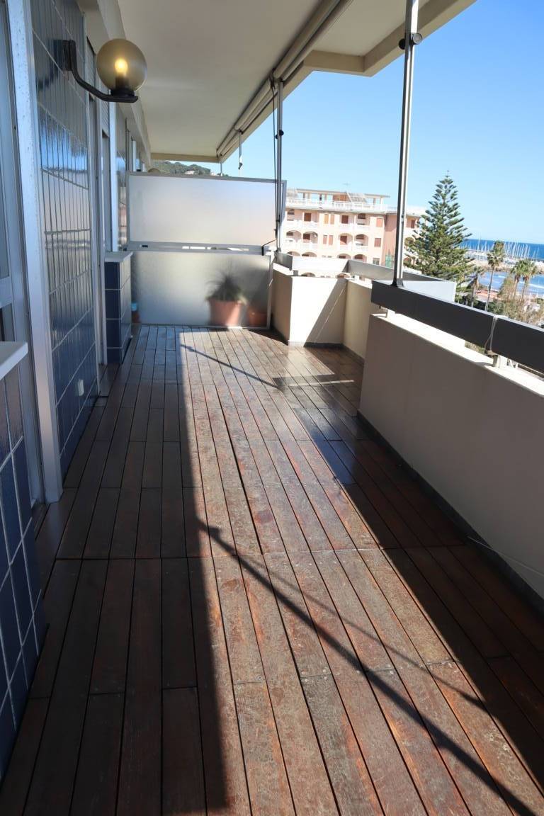 In zona centralissima, a circa 100 metri dal mare, fronte mare, GAMMACASA propone stupendo appartamento trilocale, con splendida vista mare, in vendita ad Andora (SV), ubicato al 5° ed ultimo piano con ascensore, composto da ingresso, soggiorno con cucinino, 2 camere da letto, un bagno con finestra, un'ampia balconata angolare ed un solarium di 63 metri quadri. Completa la proprietà un locale ad uso cantina. L'appartamento ha ottime finiture, esposizione sud ovest e riscaldamento centralizzato con le termovalvole. Le spese condominiali sono di circa Euro 1.200,00 all'anno. La Classe Energetica è "F", I.P.E. 94.36 kwh/mq anno.